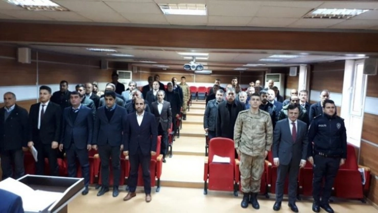 İlçe Kaymakamı Resul Özdemir başkanlığında, Cumhuriyet İlköğretim Okulu konferans salonunda yapılan toplantıya, kurum amirleri, mahalle muhtarları ve köy muhtarları katıldı.
