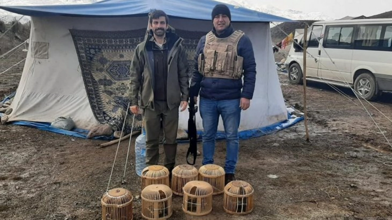 Kınalı keklikler muhafaza altına alınırken, kınalı keklikleri bulunduran 2 kişi hakkında tutanak düzenlendi.