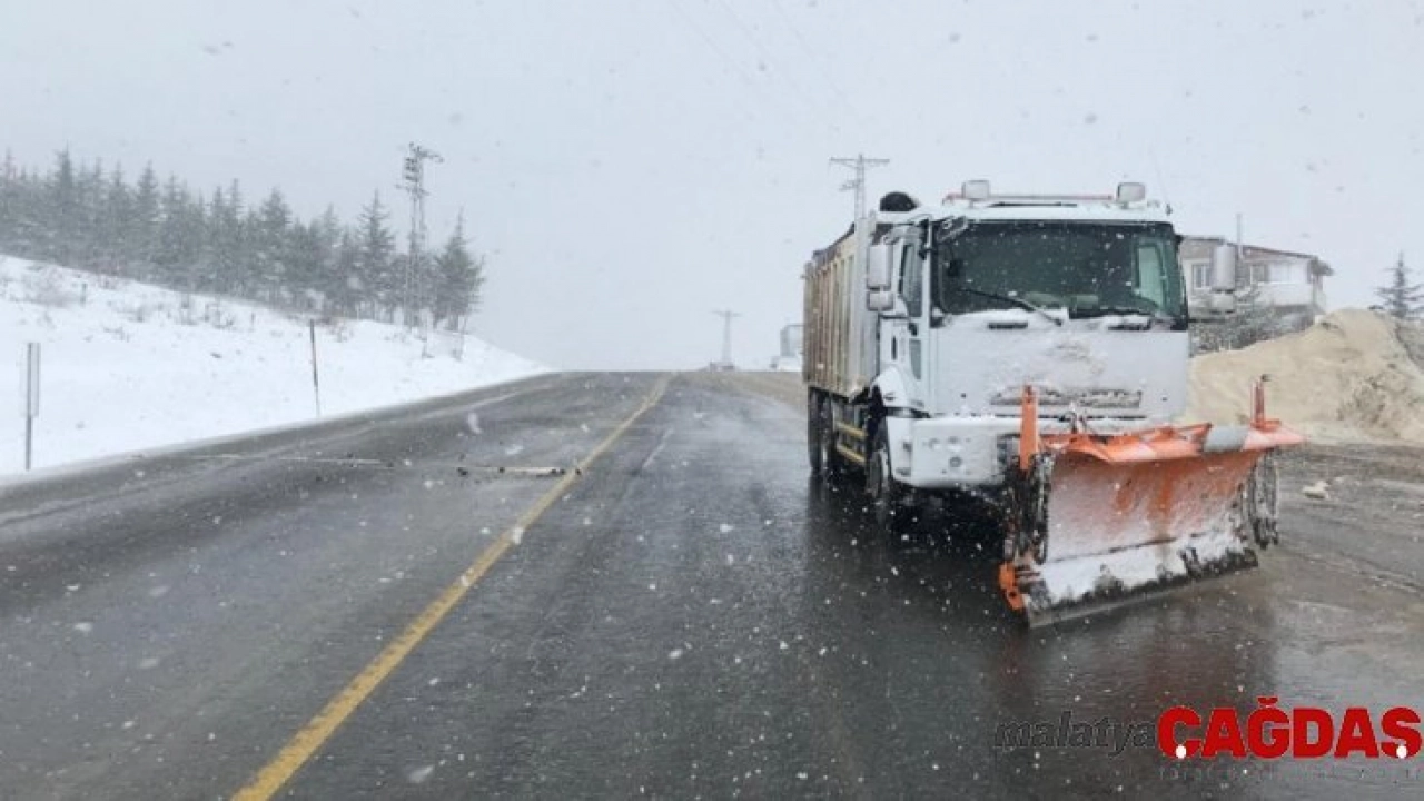 Kahramanmaraş Büyükşehir Belediyesi ekipleri, kar yağışı nedeniyle kapanan yolları temizliyor.