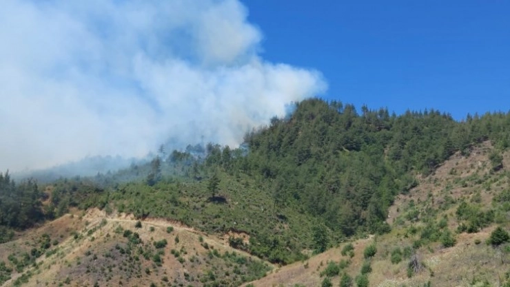 Hava ve karadan müdahale edilen yangında, 30 dekarlık alanın zarar gördüğü öğrenildi.