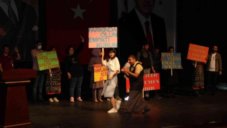 Özel öğrenciler, farkındalık oluşturmak adına ‘Farkında Olun Empati Kurun’, ‘Sevgi Varsa Engel Yoktur’, ‘Özel Eğitim Çağdaş Eğitimin Olmazsa Olmazı’ yazılı pankartları taşıdı.