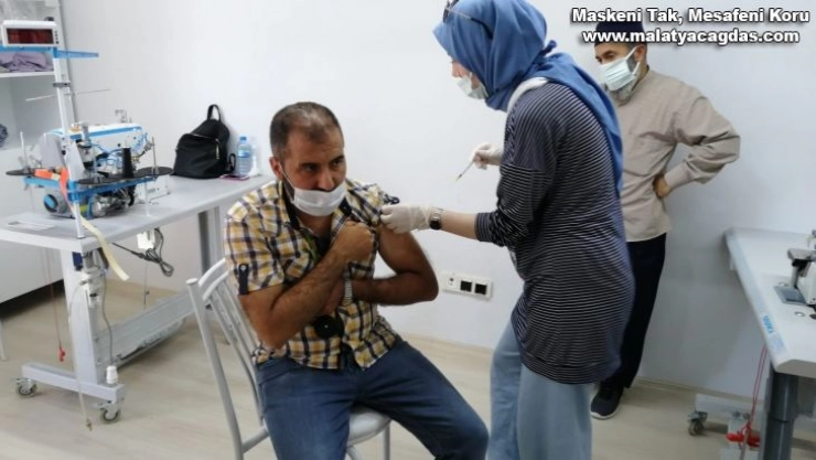 Adıyaman'ın Kahta ilçesi Organize Sanayi Bölgesi'nde mobil ekiplerle yerinde Covid-19 aşısı uygulamasına başlandı.