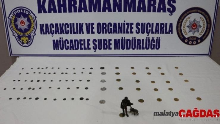 Alınan bilgilere göre, İl Emniyet Müdürlüğü Kaçakçılık ve Organize Suçlarla Mücadele Şube Müdürlüğü ekipleri, uzun süreli takibi sonucu akşam saatlerinde Onikişubat ilçesine bağlı Karacaoğlan Mahallesi Ahmet Uncu Caddesi üzerinde bulunan kahvehaneye operasyon düzenledi. Operasyonda kahvehane içerisinde arama yapan polis ekipleri, çöp kovası içinde ‘Roma Helenistik Antik’ dönemine ait olduğu değerlendirilen 88 adet sikke ve 2 adet heykelcik ele geçirdi. İş yerinde çalışan M.K.’ya ait olduğu tespit edilen tarihi eserlere el konuldu. M.K.’nın tarihi eserleri, kazı yaparak ve başka kişilerden temin ederek toplandığı öğrenildi.