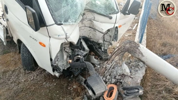 Sivas'ta yoldan çıkıp beton aydınlatma direğine saplanan kamyonetteki iki kişi yaralandı.
