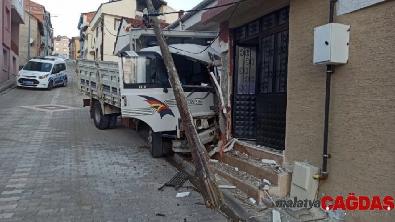 Bilecik'in Bozüyük ilçesinde sahibinin bir anlık dalgınlığı sonucunda yokuş aşağı inen kamyonet bir eve ve direğe çarparak durabildi.