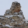 Kapadokya’da kış mevsiminin güzelliği yaşanıyor. Bölgede kar yağışının ardından peribacaları kartpostallık görüntüler oluştururken, bölgeyi ziyaret eden Çinli turistler bol bol fotoğraf çekinerek anı ölümsüzleştirdi.