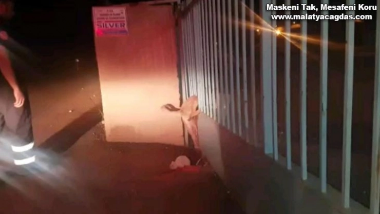 Şanlıurfa'nın Eyyübiye ilçesinde kapının demir parmaklıklarına sıkışan köpek, itfaiye ekipleri tarafından kurtarıldı.