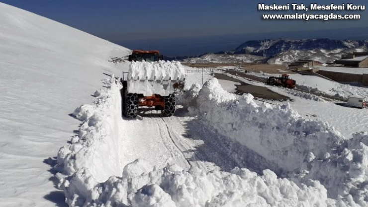 Kar kalınlığı 1 metreyi bulan Nemrut Dağı, yolu karayolları ekipleri tarafından açıldı.