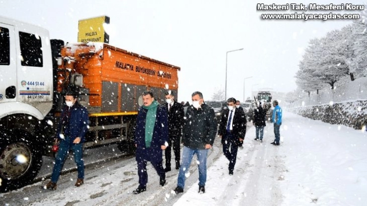 Malatya merkez ve ilçelerde gece saatlerinde başlayan kar yağışı ile birlikte Malatya Büyükşehir Belediyesine bağlı ekipler çalışmalarına aralıksız bir şekilde devam ediyor. Büyükşehir Belediye Başkanı Selahattin Gürkan, sabah saatlerinde TOKİ ve Karagöz mevkiinde yapılan çalışmaları yerinde inceledi.