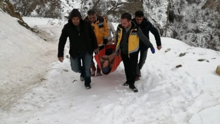 Adıyaman'ın Sincik ilçesinde kar nedeniyle mahsur kalan hasta, 6 kilometrelik yolun İl Özel İdare ekiplerince açılmasından sonra 500 metre mesafede sedye ile taşınarak ambulansa ulaştırıldı.