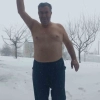 Elazığ’da kar yağmasına sevinen bir vatandaş, üstsüz şekilde sokağa çıkarak vücudunu karla ıslattı.