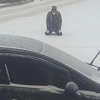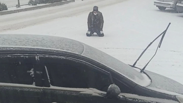 Sabah saatlerinde etkili olan kar yağışı sırasında bir vatandaş, cadde ortasında secde etti. O anlar kameralara yansıdı.