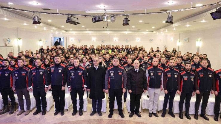 Erzurum İl Emniyet Müdürü Onur Karaburun, geleceğin teminatı olan gençlerin huzur ve güvenliği için çalışmalar yürüten "Okul Polisi" olarak görevli personel ile Polisevi’nde düzenlenen programda bir araya geldi.