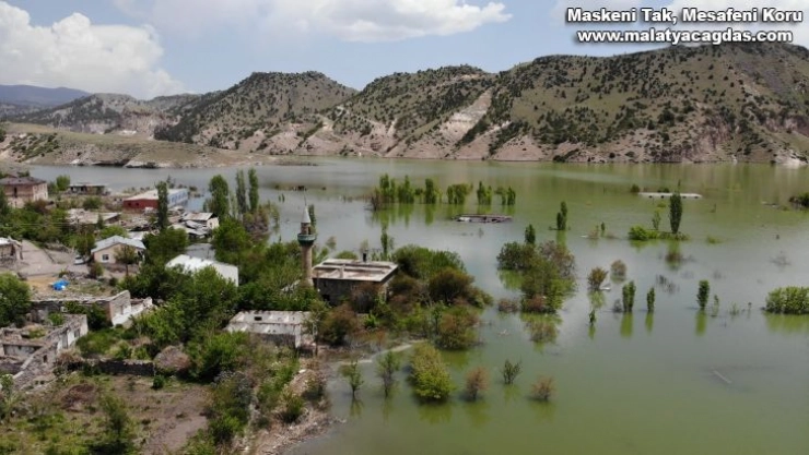 Karakurt Barajı Gölü’nde bulunan ve boşaltılan Karakurt köyü, okulu camisi ve bazı evler sular altında kaldı. Sular altında kalan cami ve eski evler ortaya kartpostal görüntüler çıkardı.