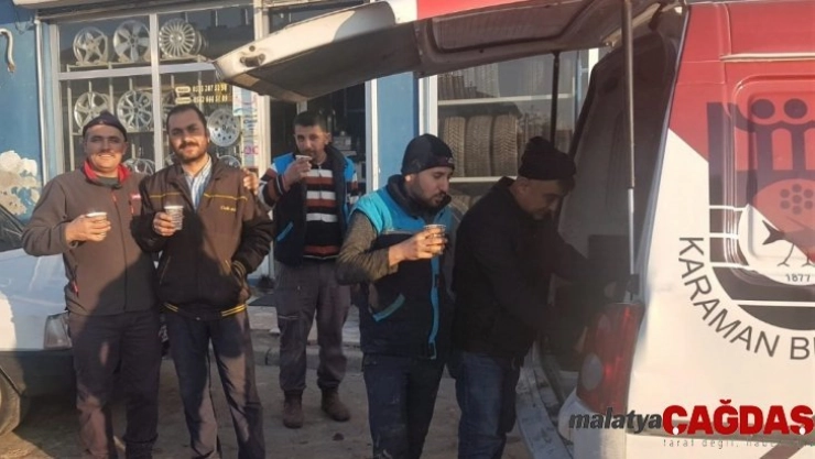 Karaman Belediyesi, sanayi sitesindeki esnaf ve çalışanlara sıcak çorba ikram etti.