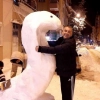 Yaklaşık 6 saat süren çalışmanın eseri olan kardan kobra yılanı gören kişiler birlikte fotoğraf çektirdi. Yerden yüksekliği 2 metreyi aşan kobra yılanın dişleri ve gözleri dikkatleri çekti.