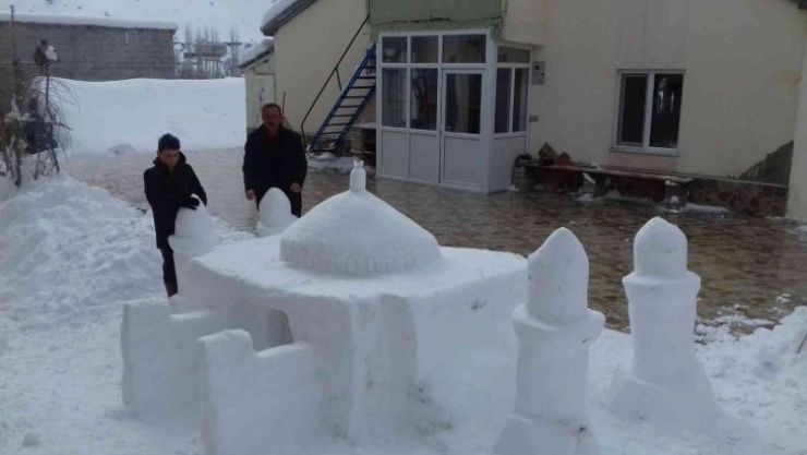 Sivas'ın Gemerek ilçesinde yaşayan Sözay Aslan'ın yaptığı kardan Ayasofya Camii, görenlerin dikkatini çekiyor.