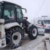 Elazığ’ın Baskil ilçesinde karla kaplı yolda kalan ambulansı, İl Özel İdaresi ekipleri kurtardı.