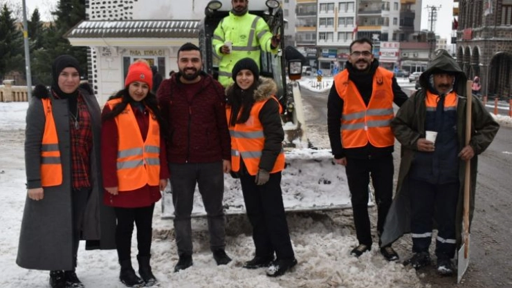 Büyükşehir Belediyesi Gönüllü Gençleri sahada çalışan ekiplere çorba ikram etti.