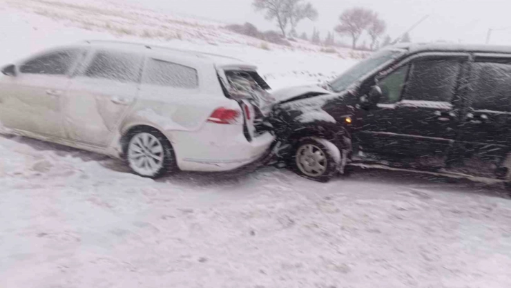 Karlı yolda araçlar çarpıştı: 1 yaralı