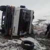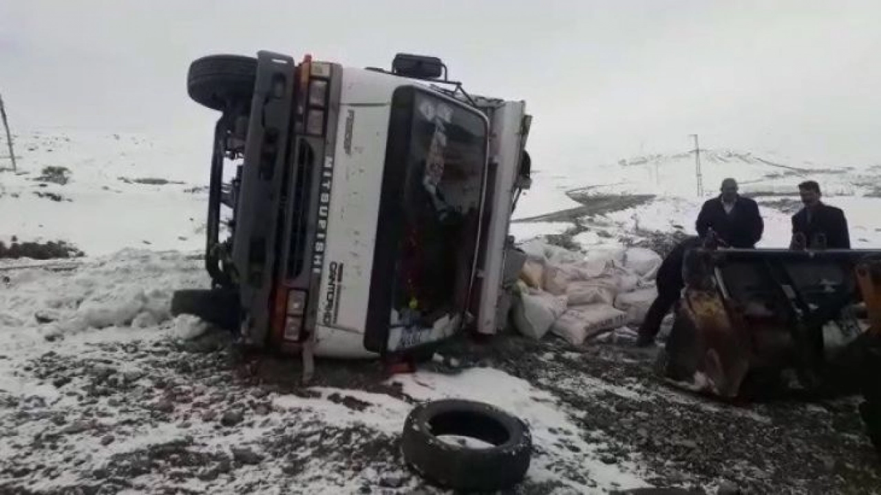 Edinilen bilgiye göre, Erzurum’dan Tekman’a giden Yusuf A. yönetimindeki 76 AR 781 plakalı kamyonet ilçeye 20 kilometre uzaklıkta Çevirme köprüsünü geçtikten sonra Kırklar şehitliği rampasında kar yağışı nedeni ile kayarak yan yattı.