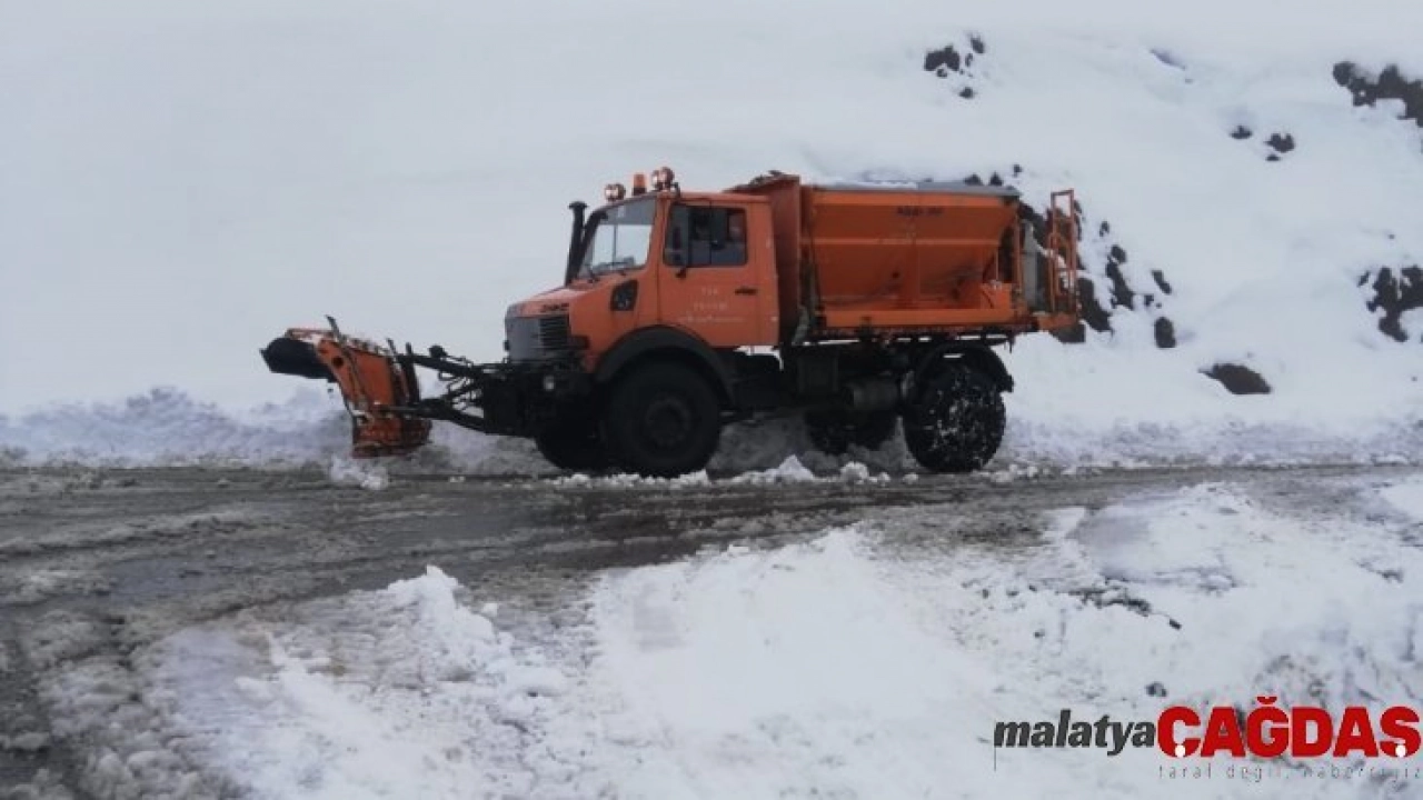 Adıyaman'da, yoğun kar yağışının olduğu Sincik ilçesinde karlı yollar temizleniyor.