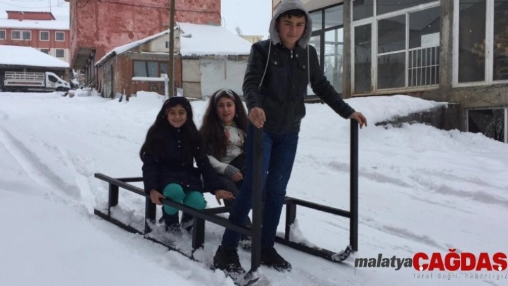 - Karlıova'da çocuklar, karda kızakla eğlendi