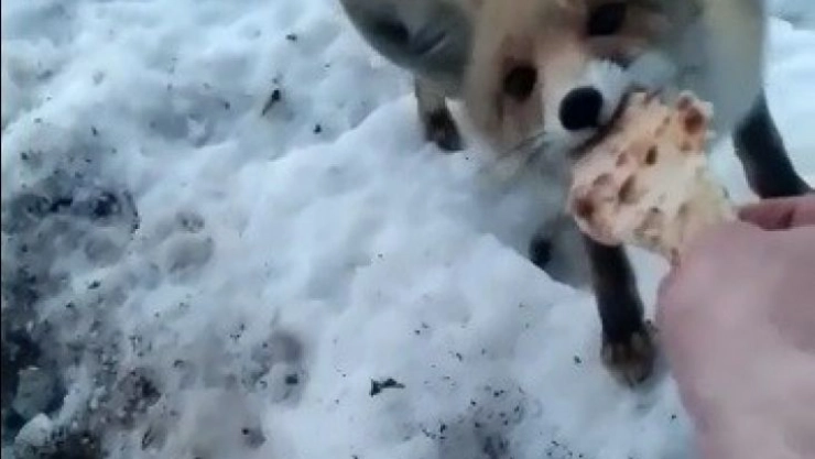 Bingöl merkeze bağlı Sancak beldesi Sarıgümüş köyünde kar nedeniyle yiyecek bulmakta zorlanan tilki, bir evin önüne kadar geldi. Tilkinin aç olduğunu anlayan vatandaş, ıslık çaldıktan sonra elindeki ekmeği hayvana uzattı. Önce ekmeği tereddüt ederek koklayan tilki, daha sonra hızlı bir şekilde ekmeği aldığı gibi uzaklaştı.