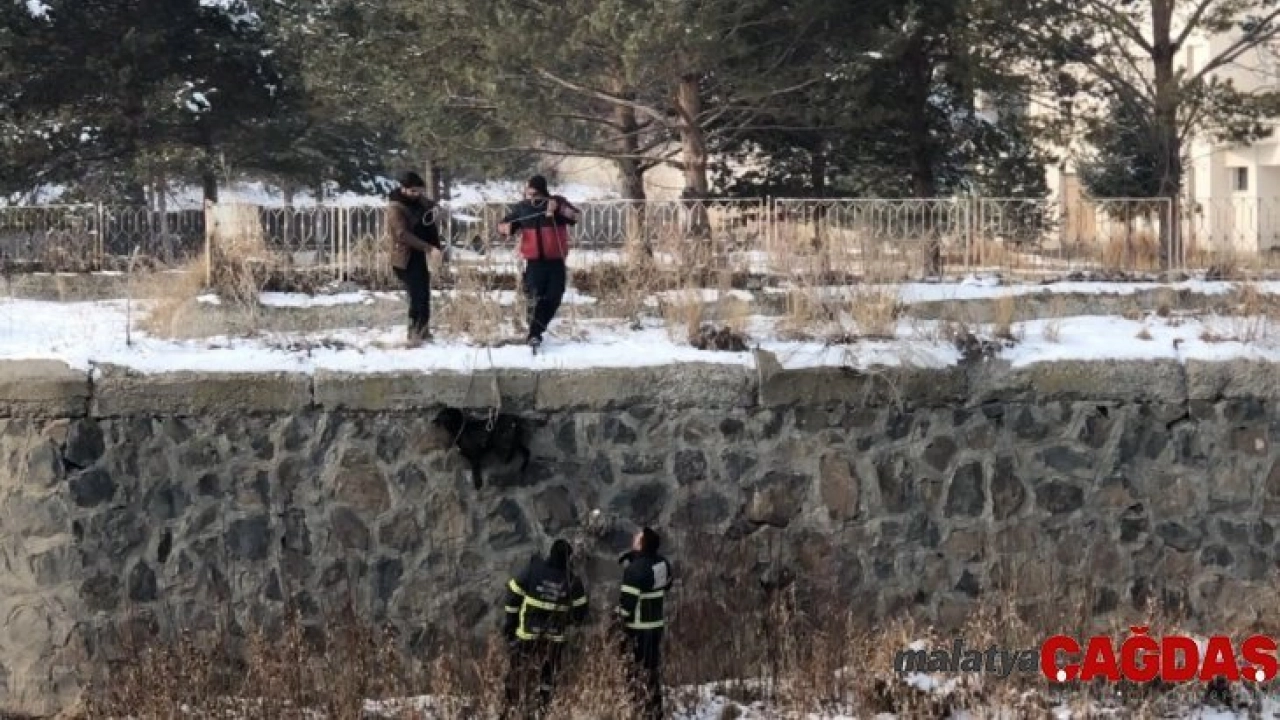 Kars Çayı’nda mahsur kalan köpeği gören vatandaşlar, durumu itfaiyeye bildirdi. Bir türlü Kars Çayı’nın yüksek duvarlarından yukarıya çıkarılamayan köpeğin imdadına Kars Belediyesi İtfaiye Müdürlüğü ekipleri yetişti. Yaklaşık 3 gündür düştüğü yerden çıkamayan ve aç kalan köpek, merdiven yardımıyla çaya inen ekipler tarafından halata bağlanarak düştüğü yerden kurtarıldı.