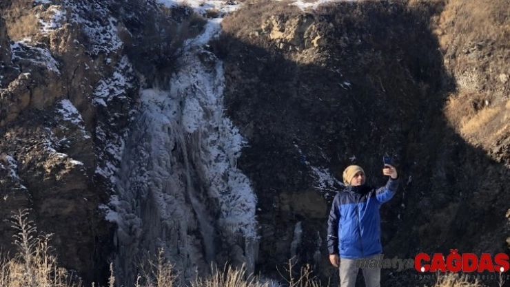 Sibirya soğuklarının etkili olduğu Kars'ta şelale dondu.