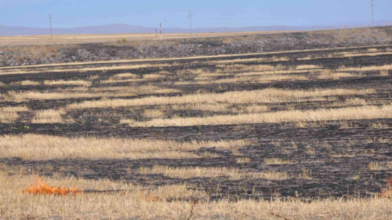 Kars'ta çıkan örtü yangınında bir tarla baştan sona kadar yandı. Rüzgarla birlikte ilerleyen yangın kendiliğinden söndü.