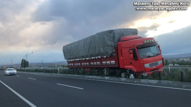 Kars’ta sürücünün direksiyon hakimiyetini kaybettiği tır, orta refüje çıktı. Kazada yaralanan olmazken, tır maddi hasar gördü.