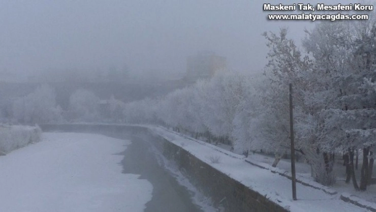 Hava sıcaklığının gece eksi 23 derece ölçüldüğü kentte, sabah saatlerinde termometreler eksi 16’yı gösterdi. Sis ve kırağının etkili olduğu beyaza bürünen ağaçlar kartpostallık görüntüler ortaya çıkardı.
