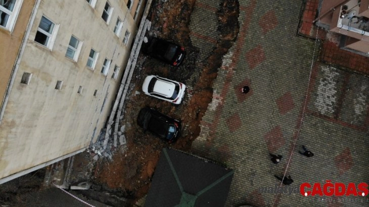 Öte yandan çöken istinat duvarı ve oluşan çukura düşen araçlar drone ile görüntülendi. Çekilen görüntüler duvarın çökmesiyle oluşan tehlikenin boyutunu gözler önüne serdi.