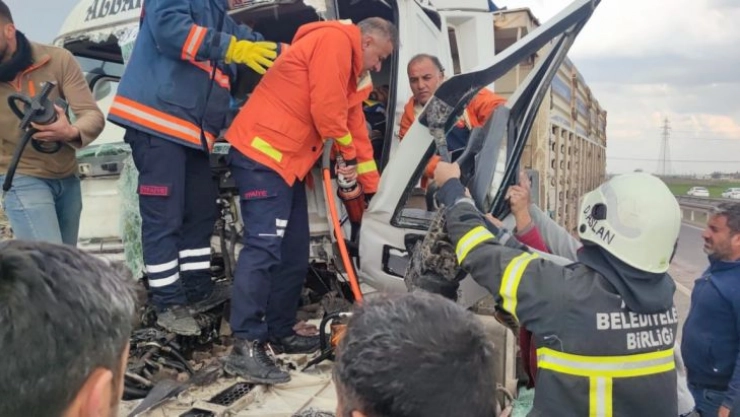 Mardin'de bir TIR, önündeki TIR'a arkadan çarpması sonucu meydana gelen kazada sürücü yaralandı.
