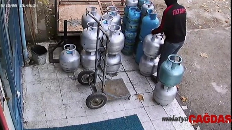 Diyarbakır'da iş yeri sahibinin servise çıkmasını fırsat bilen hırsızlar, 10 dakika içinde kucakladıkları iki ev tüpünü çalarak kayıplara karıştı.