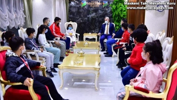 Yeşilyurt Belediye Başkanı Mehmet Çınar, Malatya Online Karete Kata Şampiyonasında çok sayıda madalya kazanan Altın Adamlar Spor Kulübünün başarılı sporcularını makamında ağırladı.