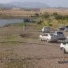 Adıyaman’da, gölet yanında park halinde bulunan traktör kayarak gölete düştü.