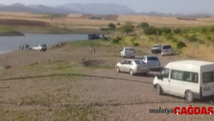 Adıyaman'da, gölet yanında park halinde bulunan traktör kayarak gölete düştü.