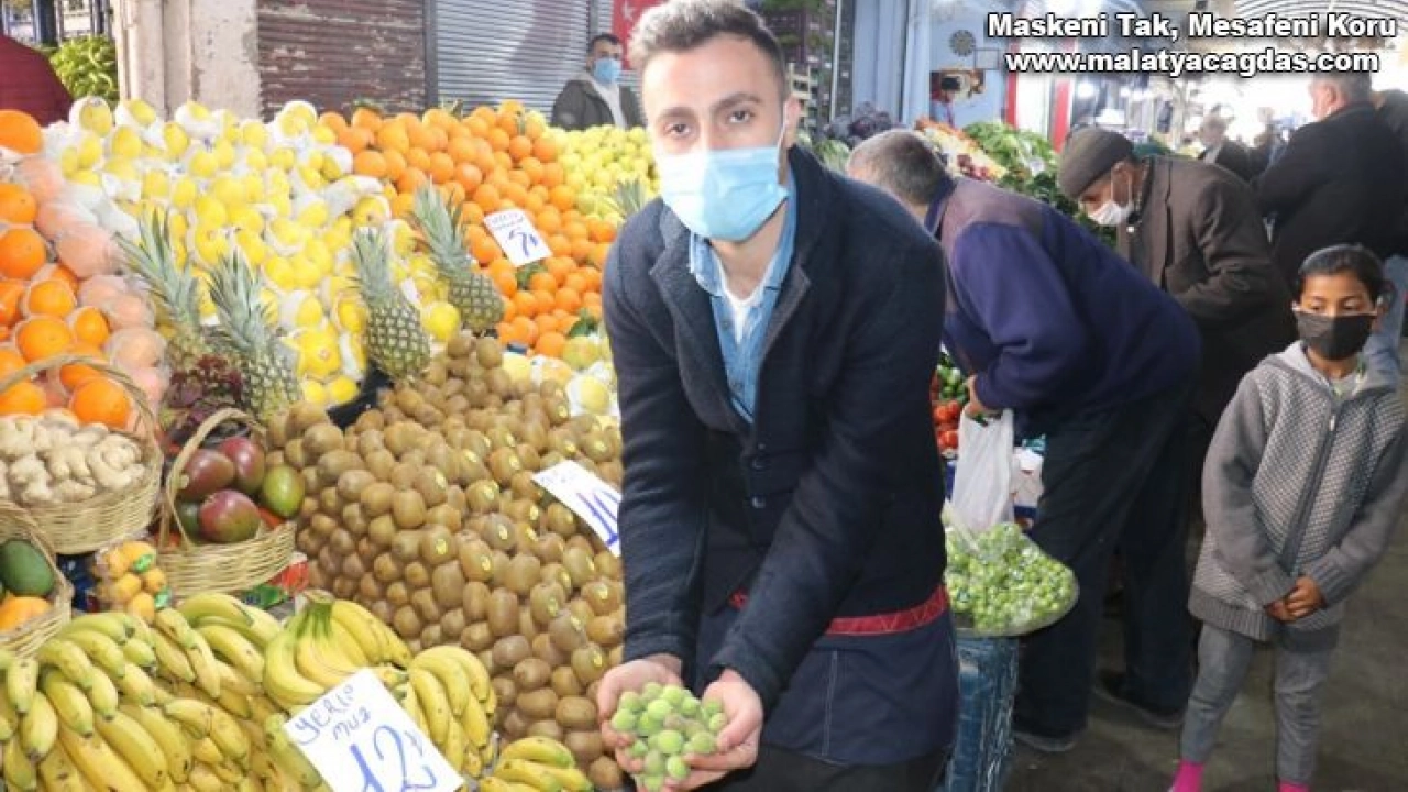 Dünyanın Kayısı başkenti olarak bilinen Malatya'da bugünlerde manav tezgahlarında yeşil kayısı olarak bilinen kayısı çağalası satılmaya başlandı.