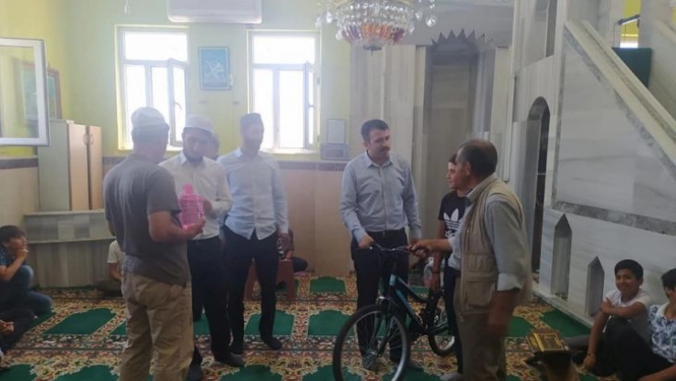 Diyarbakır'ın Dicle İlçe Kaymakamı Kadir Yurdagül, kırsal Kocaalan Mahallesi Camisinde Kur'an-ı Kerim öğrenen öğrencilere bisiklet hediye etti.