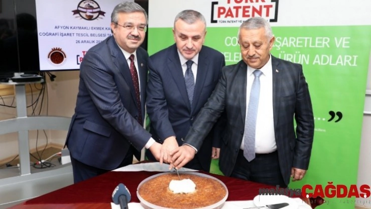 Afyonkarahisar Belediyesi’nin girişimleriyle kısa bir süre önce coğrafi işaret tescili alınan ’kaymaklı ekmek kadayıfının’ tescil belge töreni, Türk Patent ve Marka Kurumu’nda gerçekleştirildi. Törene, Afyonkarahisar Milletvekili İbrahim Yurdunuseven ile birlikte katılan Belediye Başkanı Mehmet Zeybek, tescil belgesini Türk Patent ve Marka Kurumu Başkanı Prof. Dr. Habip Asan’dan teslim aldı.