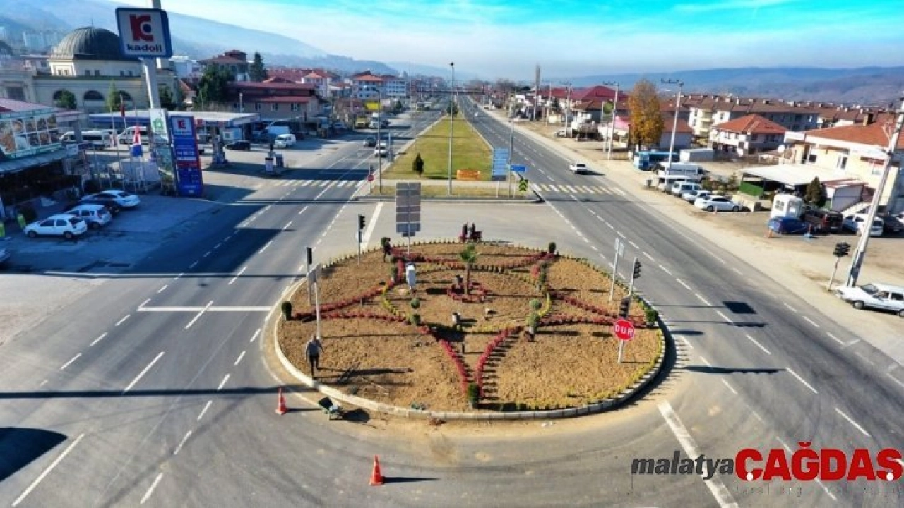 100 karayolu üzerine yaptırılan heykellerin kaldırılması ile boş kalan kavşak içlerinde peyzaj çalışmaları başladı.