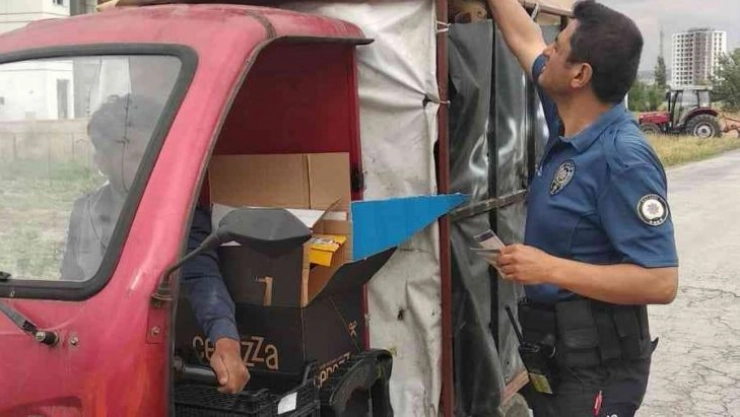 Kayseri'de polis ekipleri tarafından çek çek ve sepetli motosikletle hurdacılık yapan şahıslar denetlendi.