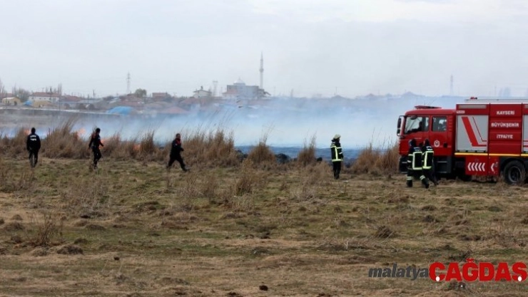 Kayseri'de devam eden ot yangınıyla ilgili olarak Kayseri Büyükşehir Belediyesi İtfaiye Daire Başkanlığı'ndan yapılan açıklamada 7 araç 24 personel ile Engir Gölü Kümeevler mevki sazlık yangınına müdahale edildi denildi.