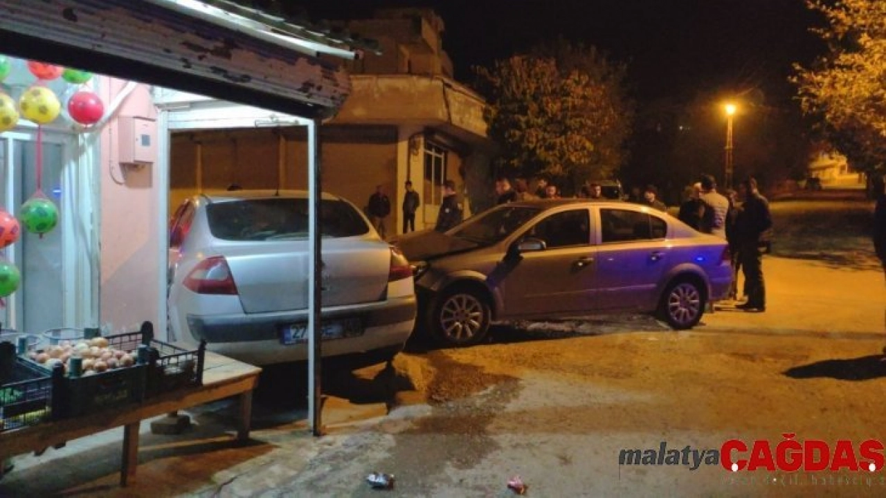 Gaziantep'in İslahiye ilçesinde bir araçla çarpışan otomobil bakkal dükkanının duvarına çarparken, kazada 2 kişi yaralandı.
