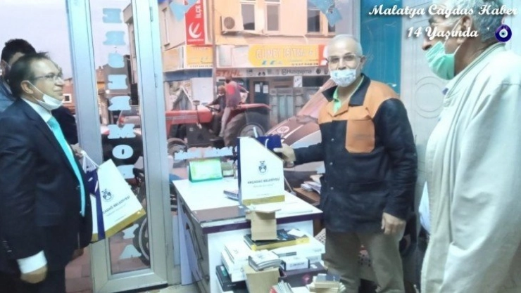 Akçadağ Belediye Başkanı Ali Kazgan, ilçe esnafını ziyaret ederek, maske ve Türk bayrağı dağıttı.