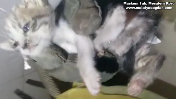 Adıyaman merkez Siteler Mahallesinde bulunan bir binanın su giderine giren ve duvar içerisindeki su gideri borusundan kedi sesi geldiğini fark eden ikamet daire sahipleri durumu itfaiye ekiplerine bildirdi. Kısa sürede olay yerine gelen itfaiye ekipleri kediye ulaşmak için duvarı kırmaya başladı. Duvar içerisindeki boruya ulaşan itfaiye ekipleri bu defa su gideri borusunu parçaladı. Borunun da açılması sonrası yavru kedi bulunduğu yerden çıkarıldı. İtfaiye ekiplerince ölmekten kurtarılan kedi daha sonra karnı doyurularak annesinin yanına bırakıldı.