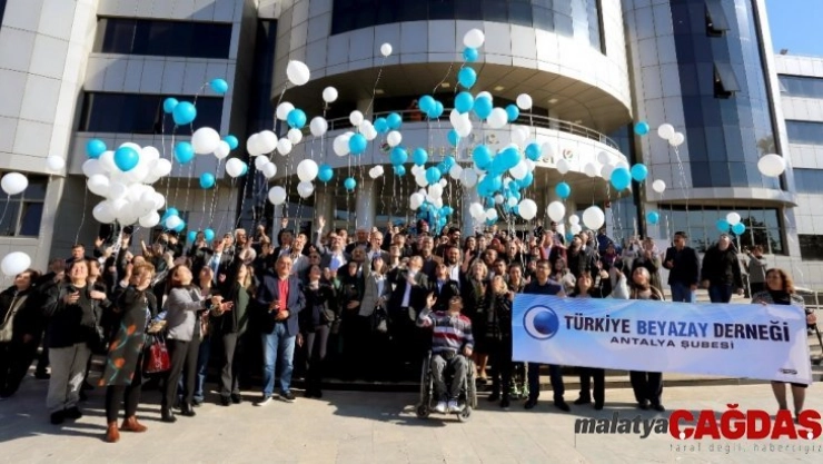 Başkan Hakan Tütüncü, daha sonra belediyenin bahçesinde, katılımcılarla ‘engeliz bir dünya’ sloganıyla gökyüzüne mavi balon bıraktı.
