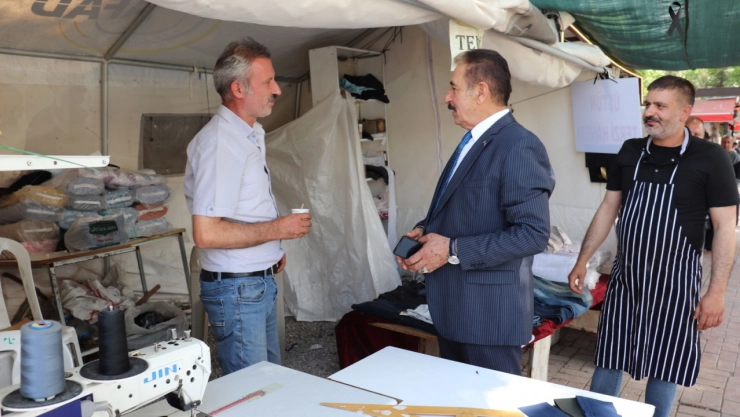 Keskin, şehir merkezinde işyerlerinin yıkılmış olmasından dolayı zorunluluk nedeniyle tezgah açmış olan esnafları tek tek ziyaret etti.
